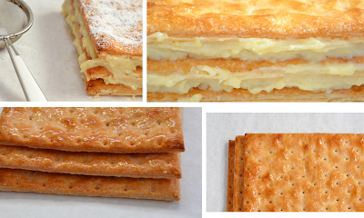 הכינו קרם וניל (אמיתי). מרחו קרם על העלה הראשון. כסו בעלה השני והדקו מעט. מרחו על העלה השני את יתרת הקרם. כסו בעלה שלישי. בזקו אבקת סוכר בנדיבות. קל לטחון סוכר לאבקה במטחנת תבלינים קטנה